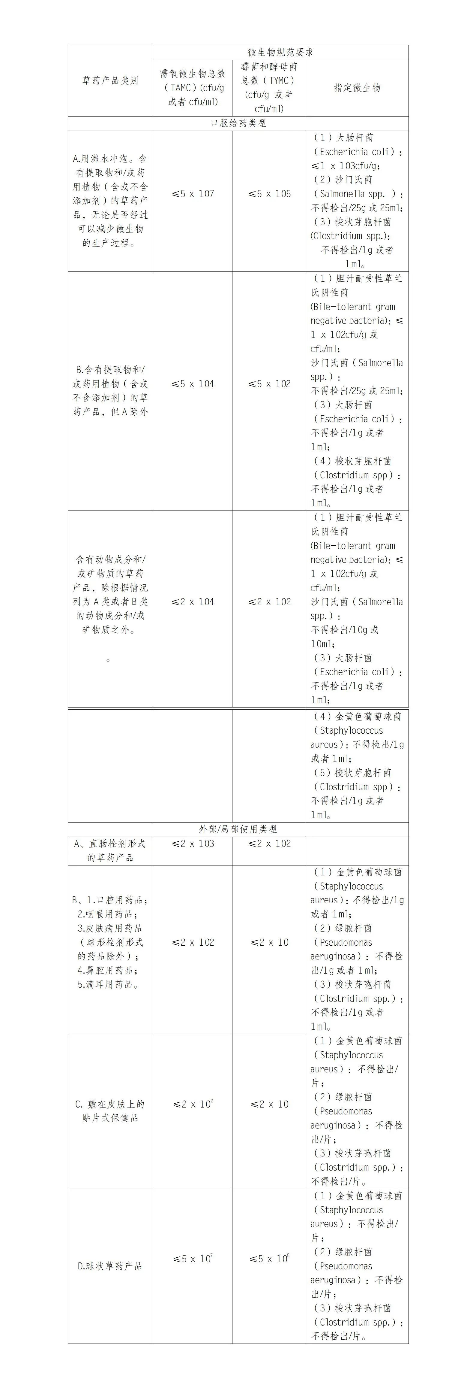 4月11日,泰国食品药品监督管理局(Tai FDA)在WTO官网发布名为《公共卫生部通知草案关于:草药产品质量的标准、纯度指标或其他基本特征B.E…》的通报(通报号:G/TBT/N/THA/733),对《B.E.2564(2020)草药产品注册、通知和上市》中关于产品质量的标准、纯度指标或其他基本特征部分中微生物和重金属污染的检测方法和验收标准的限制进行修订。通报主要内容如下: