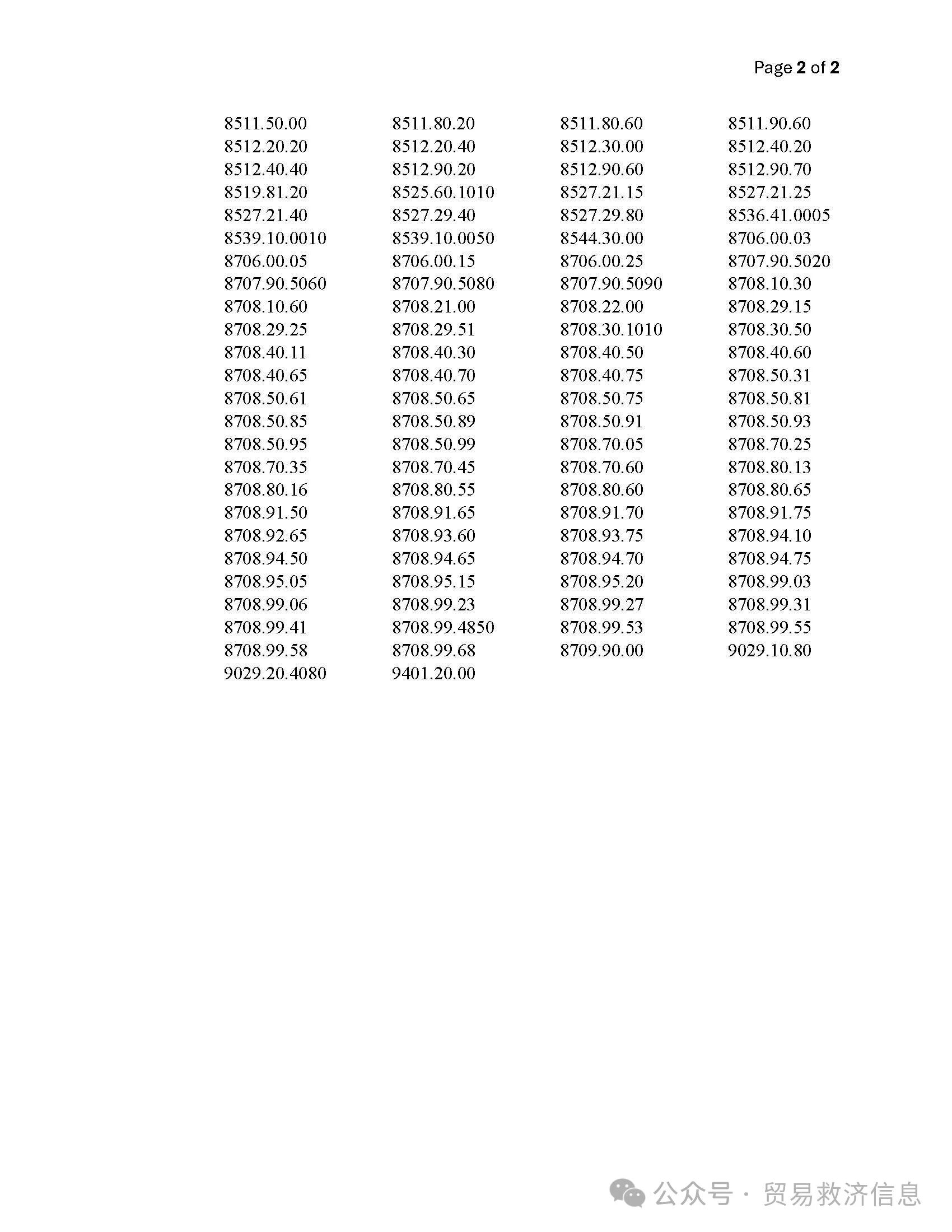 9903.74.11 | HTSUS第38条附录III第(i)款中列出的非中型和重型车辆零部件 | 0% |