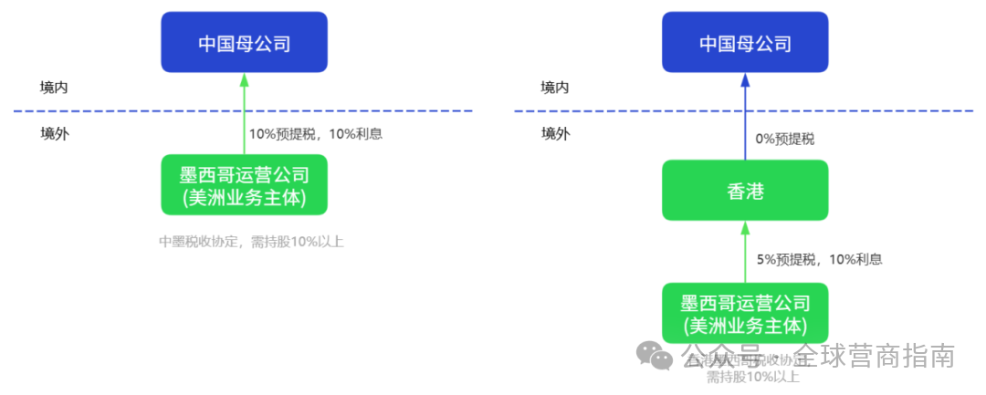 香港公司再在墨西哥设立运营子公司,负责美洲业务。根据中墨税收协定: