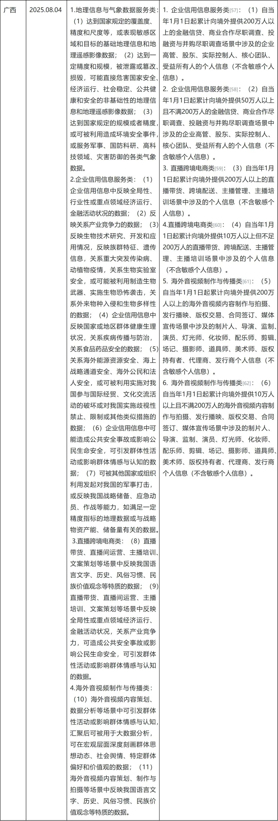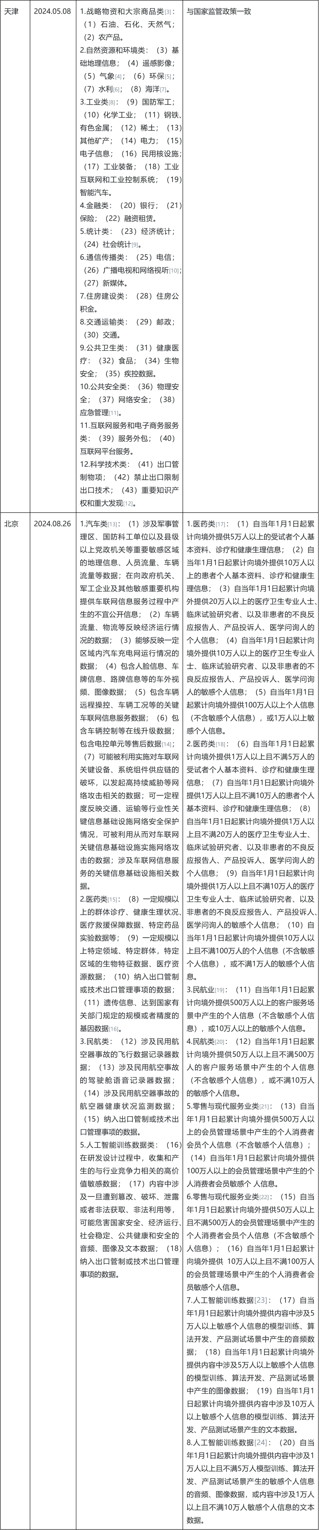《数据安全法》第三十一条规定,关键信息基础设施的运营者在中华人民共和国境内运营中收集和产生的重要数据的出境安全管理,适用《中华人民共和国网络安全法》的规定;其他数据处理者在中华人民共和国境内运营中收集和产生的重要数据的出境安全管理办法,由国家网信部门会同国务院有关部门制定。《网络数据安全管理条例》第六十二条第四项明确,重要数据是指特定领域、特定群体、特定区域或者达到一定精度和规模,一旦遭到篡改、破坏、泄露或者非法获取、非法利用,可能直接危害国家安全、经济运行、社会稳定、公共健康和安全的数据。国家网信办在“数据出境安全管理政策问答(2025年4月)”[2]中明确,《数据安全技术 数据分类分级规则》(GB/T 43697-2024)附录G《重要数据识别指南》提出了重要数据识别方法,数据处理者可依据相关法律法规、技术标准等识别申报重要数据。实践中,我们建议进一步参考相关自贸区的数据出境负面清单中所列的重要数据,亦可以作为重要数据识别的重要参考。截至目前,已有天津、北京、上海、海南、浙江、重庆、江苏、广西等多个自贸区发布了数据出境负面清单。