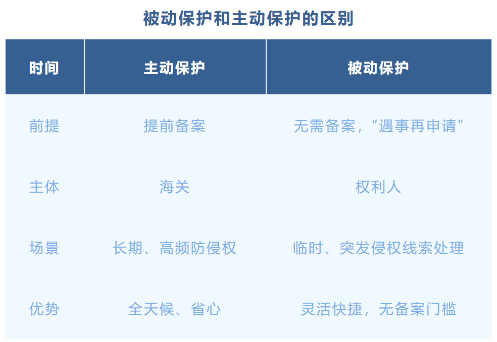 被动保护虽能解燃眉之急,但想长期防侵权,建议尽早做知识产权海关备案;备案后海关会主动监控疑似侵权货,还能简化后续维权流程;若产品常进出口或需高频防控,搭配 “主动保护 + 被动保护” 更安心,让侵权无缝可钻!