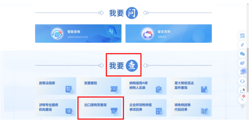 1、通过国家税务总局“出口退税率文库”(国家税务总局网站-纳税服务-我要查-出口退税率查询)或各地电子税务局等渠道,查询出口商品代码或商品名称对应的出口退税率。
