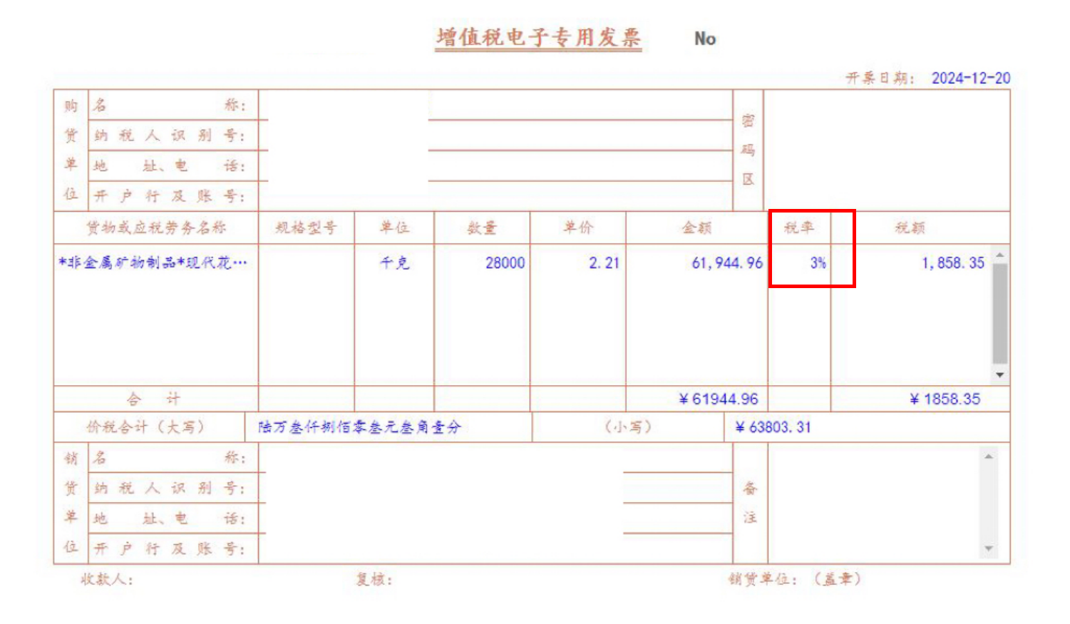 举个例子:一般纳税人A从小规模纳税人B购进出口货物其他已加工花岗岩及制品。经“出口退税率文库”查询,该出口货物增值税退税率为9%,小规模纳税人B开具的增值税专用发票上的税率为3%。根据“孰低原则”,增值税专用发票上的税率更低,因此这笔货物适用退税率为3%。