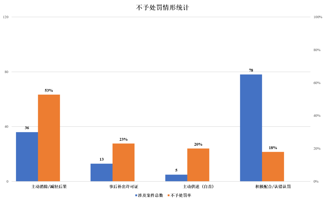 此外,还有近两成的案件最终免于处罚。这显示出在合规整改到位或情节轻微的情况下,执法部门有免除企业处罚的可能性。