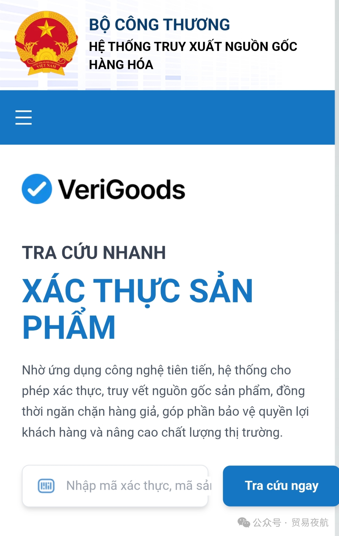 产品溯源系统于2025年12月23日在 www.verigoods.vn 已正式上线。企业可在此平台注册产品信息、获取验证代码,并获得技术支持。