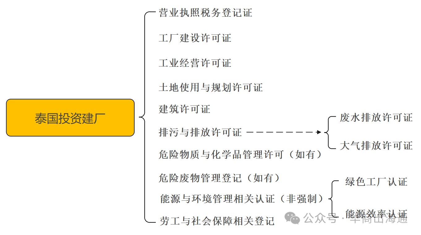 一、泰国投资建厂需要取得的许可及/或证照