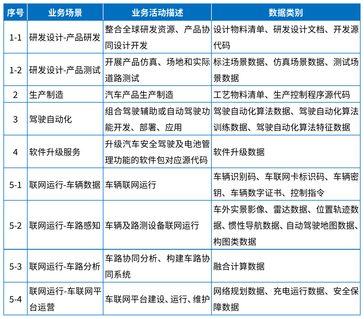 涉及在境内运行的10万台以上车辆收集的标注场景数据、仿真场景数据、测试场景数据、驾驶自动化算法训练数据与算法特征数据、车外实景影像、雷达数据、位置轨迹数据、惯性导航数据、自动驾驶地图数据、构图类数据